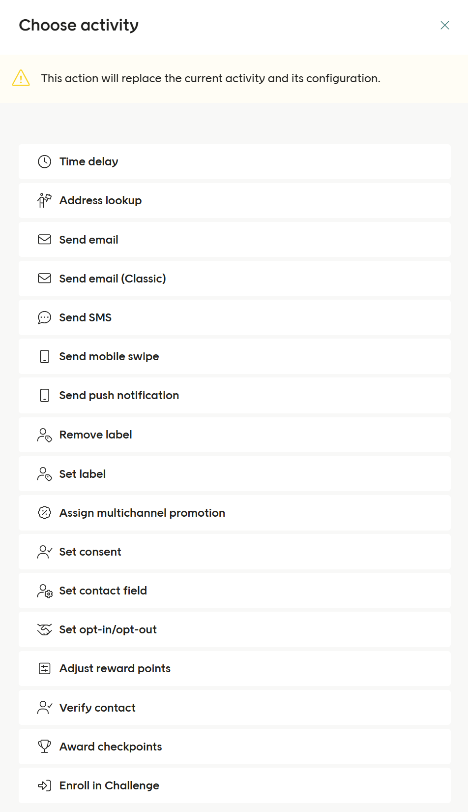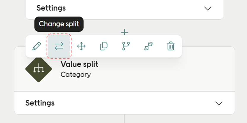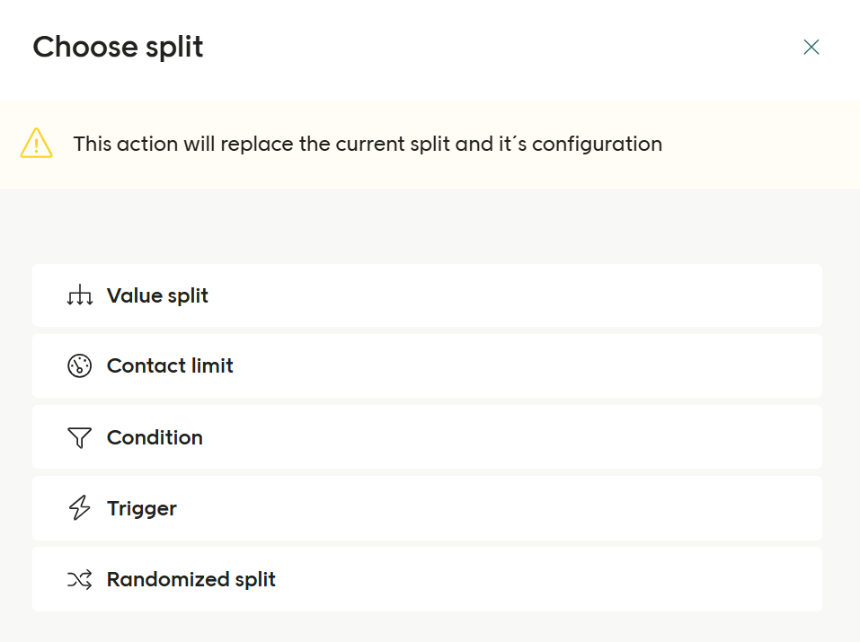 You can change type of an existing split or activity directly in the automation. For splits, the option Change split appears as one of the options.