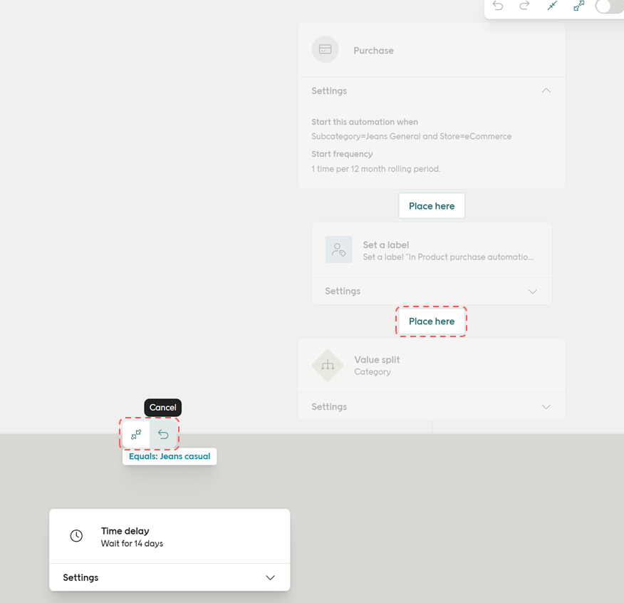 Click on the Place here button at your intended destination. You can cancel the move by clicking Undo in the top right corner as you hover on the activity or split.