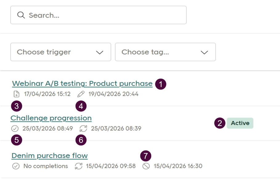 Each automation is presented with key information. These dates and numbers help you get a quick understanding of how your automations are performing and where attention might be needed.